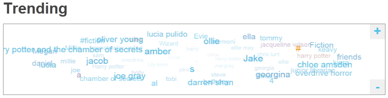 The Trending list is similar to The Cloud in .NET (which showed the most popular searches), however in the Eclipse HTML5 interface this now shows the most popular searches including titles and authors. The results are also colour coded by the popularity of the trending item, going from Blue (less popular) to Red (very popular).