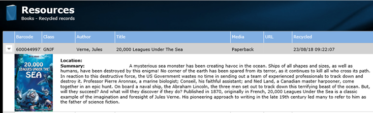 At some stage it will be necessary to remove and/or delete items from the library if a resource is no longer needed in the system or are no longer in stock. If the resources barcode needs replacing then it is not required to delete the book the barcode can be changed as per the topic Changing a Resource Barcode.