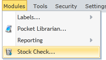 ·To create a new Stock Check, click Modules / Stock Check... from the top menu.
