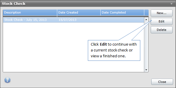 ·Highlight the stock taking session to be continued before clicking Edit (on the right of the window).