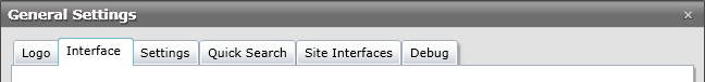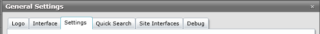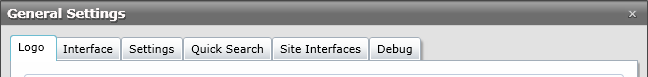 From the General Settings window, you can change settings that affect many areas of the system such as the Interface, Logo, Quick Search and more.