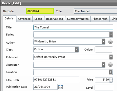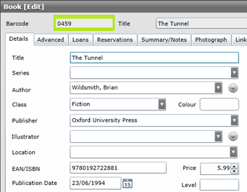 The instructions in this topic explain how to change a resource barcode number in the application. Remember that the barcode label stuck onto the resources inside cover will also need to be changed to match.