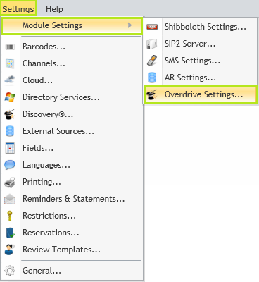 ·Open the Management page and select Settings / Module Settings / OverDrive Settings... from the menu at the top.
