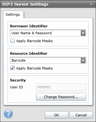 ·The last setting in this section is the option to Change the SIP Password. The SIP2 system requires password authentication before it can be used. The username is always the number shown in the User ID box and you can click Change Password... to set the password at any time.